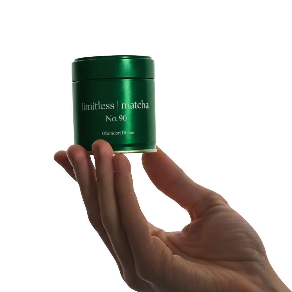 Limitless Matcha No. 90 „Okumidori“. Erste Pflückung, handverarbeitet und biologisch angebaut in Shizuoka, Japan. Jede Dose einzeln geprüft – nur solange der Vorrat reicht.